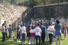 Il terreno del campo sportivo era suddiviso in varie postazioni, dove i ragazzi potevano cimentarsi a rotazione nelle pratiche più disparate. Il Gruppo Arcieri ha proposto prove di tiro con l’arco (l’Italia vanta in questo campo la medaglia d’oro olimpica di Atene), il Cai Valgandino-gruppo Koren ha realizzato una parete di arrampicata sportiva, la Pallacanestro Casnigo ha spiegato la tecnica di base con tiri a canestro, la Scuola "Fuorididanza" di Lidia Salvatoni ha mostrato passi di danza moderna e numerose coreografie di gruppo, l’Oratorio sezione calcio ha proposto esercizi di tecnica e tattica, l’Atletica Leffe ha creato due distinti percorsi di staffetta, con salti e lanci propri della "Regina delle Olimpiadi".