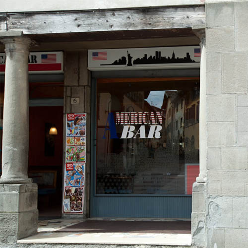 AMERICAN BAR bar situato nella piazza centrale del paese, per colazioni, piccoli snack e aperitivivendita bottiglie di vino - torte gelato e scatole di cioccolatini, pasticcini e caramelle