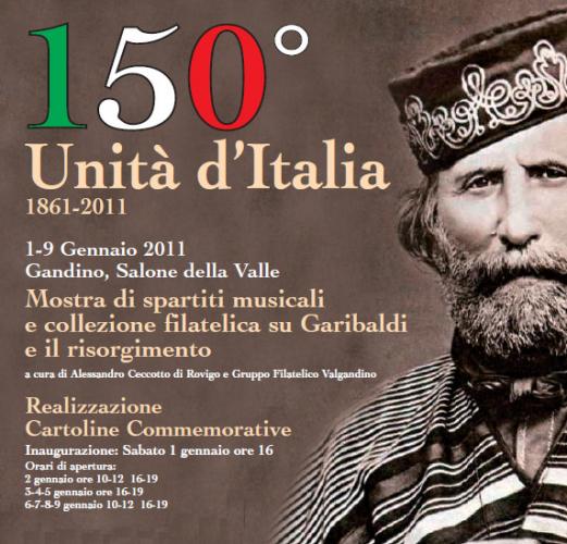 Celebrazioni per il 150° dell'Unità d'Italia Il Gruppo Filatelici Valgandino e C.F.R. Milano propongono Mostra di spartiti musicali e collezione filatelica su Garibaldi e...
