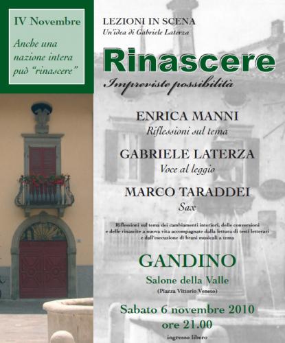 In occasione delle celebrazioni per il IV NovembreRinascereImpreviste possibilitàRiflessioni sul tema dei cambiamenti interiori, delle conversioni e delle rinascite a nuova...