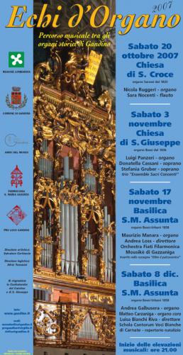 Torna, fra ottobre e dicembre, la rassegna “Echi d’Organo”, organizzata dalla Pro Loco con il patrocinio del Comune di Gandino e della Parrocchia di Santa Maria Assunta.