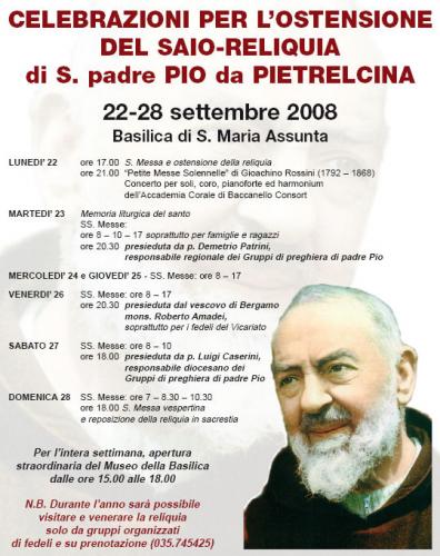 CELEBRAZIONI PER L’OSTENSIONE DEL SAIO-RELIQUIAdi S. padre PIO da PIETRELCINA22-28 settembre 2008Basilica di S. Maria Assunta