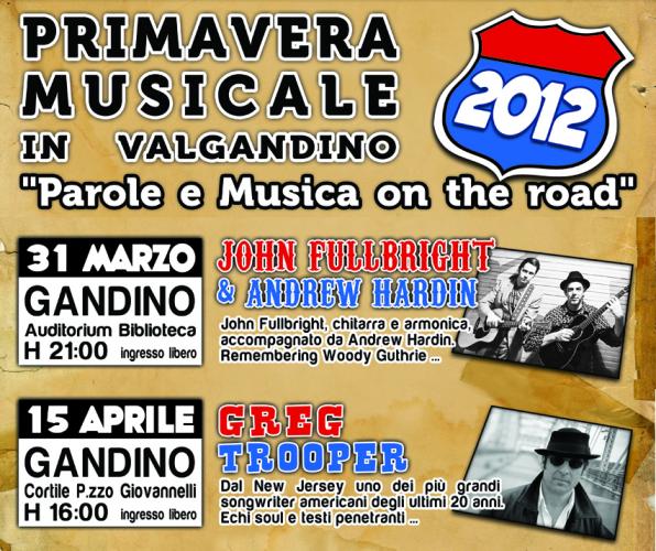31 Marzo ore 21:00 - Auditorium BibliotecaJohn Fullbright & Andrew HardinLa chitarra...