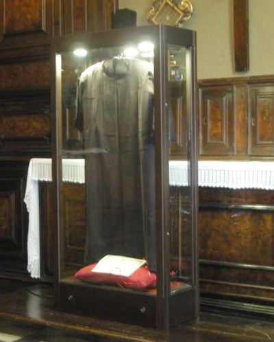 Grazie alla preziosa consulenza del Reliquiarista Diocesano, don Giampietro Masseroli, si è deciso di predisporre un’apposita teca nella sacrestia della Basilica, all’interno della quale il saio sarà sempre visibile e potrà essere esposto in chiesa per particolari celebrazioni.