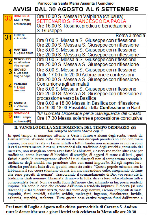 ORARI SANTE MESSE