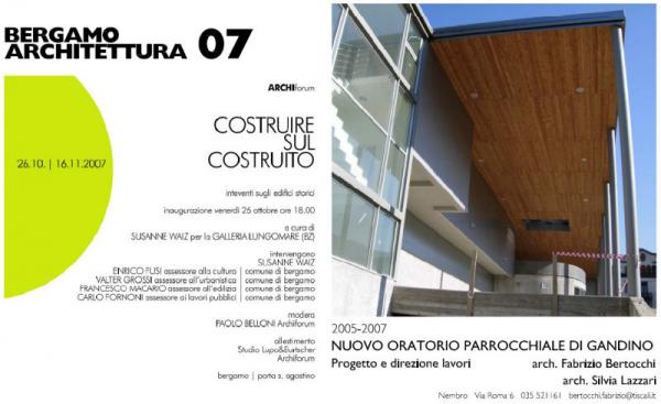 Fra questi è stato scelto anche il nuovo Oratorio di Gandino, progettato dall'architetto Fabrizio Bertocchi e inaugurato lo scorso 12 maggio 2007.