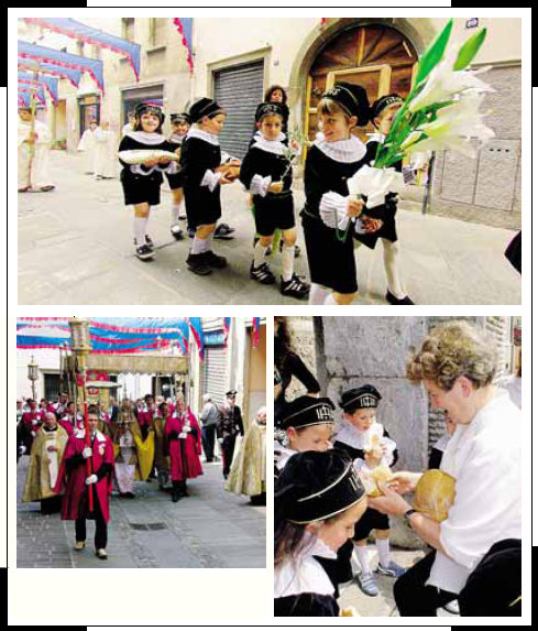 I preparativi per i paggetti iniziano con largo anticipo, con le prove «sartoriali» e, soprattutto, con la preparazione dei simboli eucaristici che ogni piccolo porta in processione.
