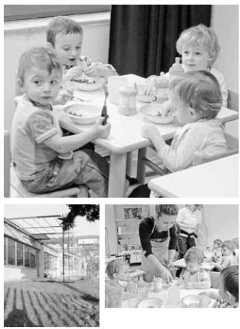 In alto e sopra, alcuni dei 24 bambini iscritti all’asilo nido consortile di Leffe; a sinistra, l’esterno