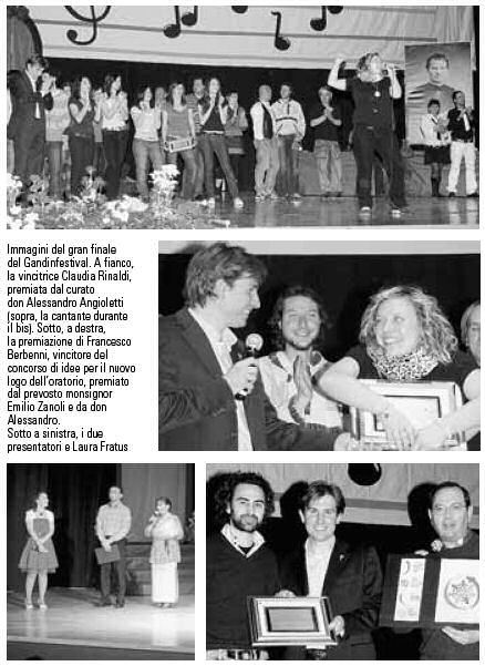 C’è voluto uno spareggio finale a tre per decidere la canzone vincitrice della prima edizione del «Gandinfestival», la gara canora proposta sabato scorso dall’oratorio di Gandino in occasione della «Settimana di San Giovanni Bosco». Il palcoscenico del nuovo cinema teatro Loverini ha rivaleggiato per una sera con quello del teatro Ariston di Sanremo, con tanto di scalone dal quale sono scesi gli 11 concorrenti in gara, che hanno proposto brani impegnativi e artisticamente di ottimo livello.