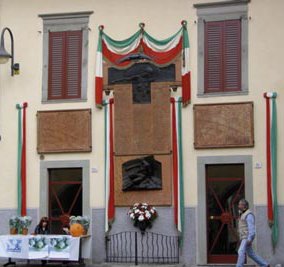 La facciata del Salone della Valle in Piazza Vittorio Veneto a Gandino ospita da sempre le lapidi commemorative dei Caduti dei conflitti mondiali, con particolare rilievo per la Medaglia d’Oro G. battista Salvatoni, eroe della guerra di Spagna. Negli ultimi anni le lapidi sono state al centro della cronaca, in quanto l’amministrazione leghista di Marco Onagro nel 2001 aveva rimosso le lapidi al momento della ristrutturazione del Salone della Valle, con il proposito di realizzare il monumento in altra sede. La cosa aveva suscitato scalpore, in quanto la rimozione era avvenuta senza alcuna autorizzazione (intervenne con un’ingiunzione la Sovrintendenza alle Belle Arti) e soprattutto senza consultare in maniera adeguata i cittadini e le Associazioni combattentistiche e d’arma. Addirittura il 25 aprile 2001 le celebrazioni e la deposizione della corona d’alloro si erano svolte davanti a una gigantografia appoggiata alla facciata. Era stato anche ventilato un “referendum”, che l’amministrazione leghista sottopose però solo a un centinaio di persone.