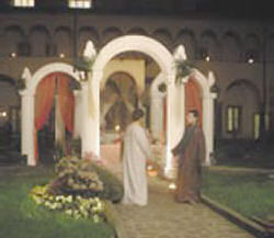 Il Convento delle Suore Orsoline, casa madre dell’ordine, ha costituito il punto di partenza. Nella Chiesa di San Mauro è stata introdotta la commemorazione della via della Croce e successivamente nel chiostro seicentesco è stata rappresentata la prima stazione, con un’effi cace ambientazione del Cenacolo.