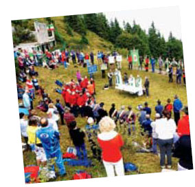 Ormai da parecchi anni, per sottolineare lo stretto legame che unisce le nostre due valli confinanti, l’Alta Valle Seriana e la Val Gandino, siamo soliti darci appuntamento alla Forcella larga, ai piedi del pizzo Formico, dove sorgono i ruderi della Capanna Ilaria, davanti ad un altare.