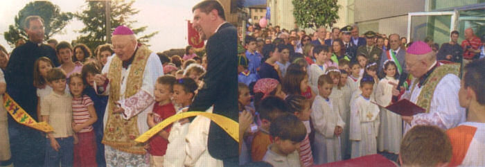la manifestazione con la messa in basilica e successivamente un lungo corteo che ha portato il vescovo fino all'oratorio accompagnato dalla banda di Gandino e da tutti i bambini, fruitori della nuova struttura.