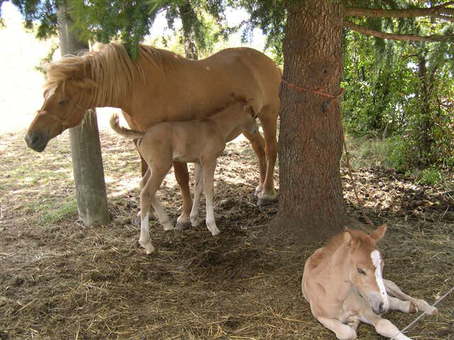 Il parto gemellare è avvenuto il 28 luglio alle prime luci dell'alba e si tratta di un evento davvero raro per i cavalli. «Dopo il temporale della notte – racconta Lanfranchi – mi sono alzato di buon'ora come mia consuetudine e ho provato a chiamare Stella, ormai al termine della gravidanza, che per gli equini è di 11 mesi. Diversamente dal solito Stella non ha lanciato il suo nitrito di risposta e per questo ho verificato meglio dove fosse finita. Ho notato che era dolorante, sono riuscito ad accompagnarla in una zona riparata e, attorno alle 5, ha dato alla luce la femmina. Credevo fosse tutto finito, ma poco dopo è nato un secondo puledro, questa volta maschio».