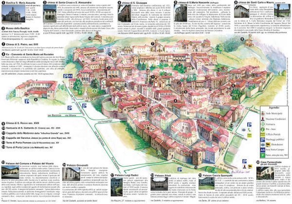 Presenta in modo suggestivo e molto chiaro i principali edifici, chiese, palazzi, monumenti presenti nel paese accompagnandoli con una sintetica descrizione che viene poi ripresa ed approfondita sull'altra facciata del pieghevole.