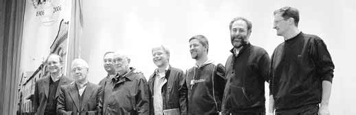 Insieme al prevosto don Emilio Zanoli sono intervenuti anche i curati che nel dopoguerra hanno prestato la propria opera a Gandino, salutati con calore dal numeroso pubblico presente in sala:nella foto da sinistra don Davide Pelucchi (a Gandino dal 1979 al 1985), don Ettore Persico (dal '72 al '79), don Emilio Zanoli (prevosto di Gandino), don Emilio Mayer (dal '45 al '61), don Eugenio Coter (dal 1985 al 1991), don Andrea Mazzoleni (attuale curato dell'oratorio di Gandino), don Alberto Caravina (dal '91 al '94), don Massimo Locatelli (dal '94 al 2001). Al termine della serata una sorpresa «virtuale»: la visita agli ambienti del nuovo oratorio in costruzione, grazie alle «magie» dell'informatica e all'impegno di Francesco Parolini, Walter Tresoldi e Paolo Tomasini che hanno coordinato tecnicamente la serata.