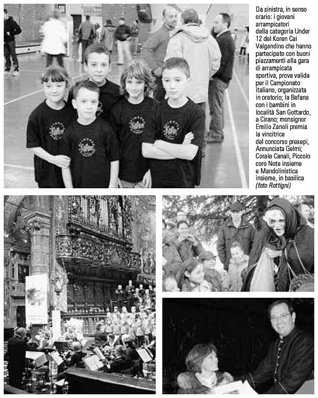 Scalatori, un concerto in basilica e la befana hanno chiuso le manifestazioni natalizie a Gandino. Nella zona del santuario di San Gottardo a Cirano, domenica si è rinnovata la tradizione della «Befana dal cielo», che quest'anno ha compiuto un atterraggio senza decollo. Le proibitive condizioni in quota, caratterizzate da nebbia e piovaschi, hanno impedito ai giovani del Volo Libero monte Farno di spiccare il volo con il parapendio, per portare dolci ai bambini in attesa. Un'attesa che non è comunque andata delusa, visto che la befana è comunque arrivata, accompagnata da uno stuolo di elfi.