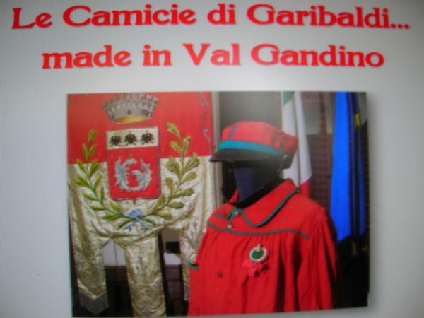 Chiedo che strada devo fare per raggiungere la Tintoria Scarlatti di Prat Serval dove furono  confezionate e tinte le camicie rosse di Garibaldi. “Le chiamo l’Assessore al telefono”, risponde prontamente Andrea e così l’Assessore alla Cultura Filippo Servalli di Gandino , gentilmente racconta “il 2 Giugno 2011,  Festa della Repubblica Italiana, consegnerò 100 camicie rosse a tutti i cittadini italiani che ne hanno fatto richiesta dal giorno celebrativo dell’Unità d’Italia sino ad esaurimento, che riproducono fedelmente le storiche divise scarlatte dei Mille prodotte a Gandino nel 1860.