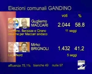 Servizio trasmesso nel notiziario del 28.05.2007 da Antenna 2.I risultati delle elezioni e le interviste con il sindaco riconfermato Gustavo Maccari e lo sfidante Mirko Brignoli.