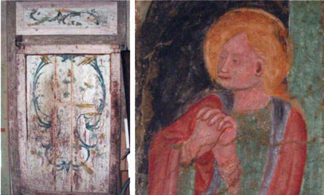 Il nucleo più antico è l’ala destra (lato Sud), di altezza più contenuta rispetto al fabbricato principale. Essa risale probabilmente al 1200 anche se fu oggetto di trasformazioni continue nei secoli successivi; qui è stato rinvenuto un affresco molto antico rappresentante la crocifissione, conservato ora su tela.