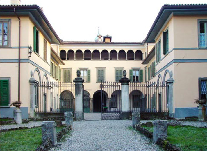 Palazzo ZilioliÈ uno dei palazzi più conosciuti di Gandino. L’organismo architettonico, costituito da un corpo principale a tre pieni e da due ali laterali ad esso ortogonali e più basse, risale alla fine del secolo XVI. Propone lo schema classico del palazzo gandinese con il porticato e i loggiati soprastanti esposti a Sud, che disimpegnano i locali affrescati nel settecento e nel secolo successivo (sala della caccia e sala delle stagioni). A piano terreno, seppure degradate, grottesche cinquecentesche decorano le volte. |