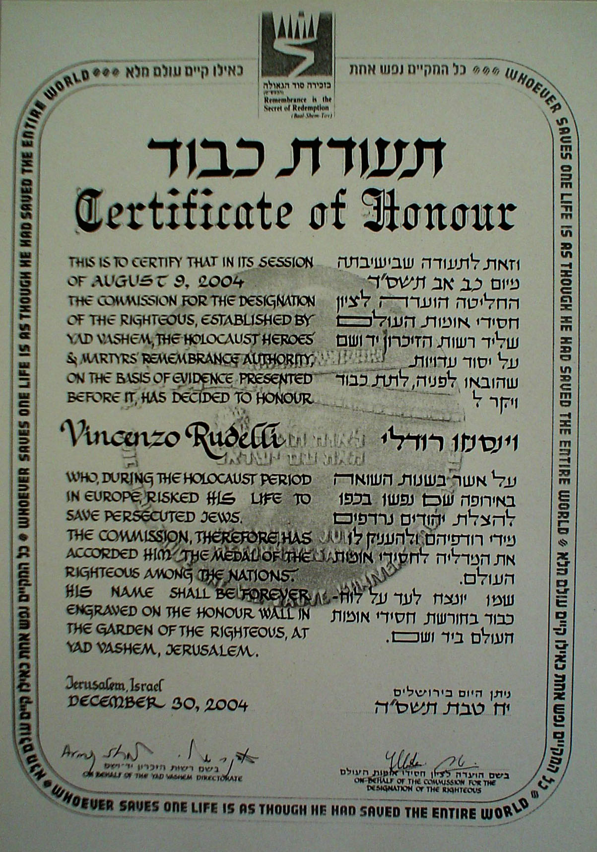 Il 30 dicembre 2004 lo Stato d’Israele ha assegnato a lui e ad altri cinque gandinesi (i coniugi Bortolo e Battistina Ongaro, Francesco Lorenzo con Maria Chiara Carnazzi Nodari e Giovanni Servalli) il riconoscimento di “Giusto fra le Nazioni” per l’impegno fattivo mostrato nel salvataggio, in paese e sui monti, di decine di Ebrei rifugiatisi a Gandino e assistiti di fatto dall’intera popolazione. La cerimonia di consegna si svolse il 27 novembre 2005 nel Salone della Valle a Gandino. Così lo rircordava nel 2005 la figlia Lina: «So che mio padre nascondeva gli ebrei d'accordo con altre persone di Gandino. A noi figli ripeteva sempre che bisognava avere rispetto degli ebrei e di tutte le persone. "Ricordatevi che sono esseri umani proprio come noi" ci ripeteva.