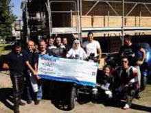 Eccola in sella, suor Edvige Tomasini, mentre riceve l’assegno da tremila euro che il Motoclub Valgandino presieduto da Ferruccio Andreis ha voluto donare alla scuola materna di Mirandola, in Emilia,...