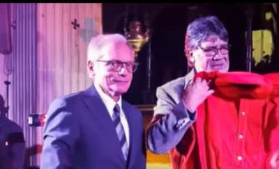Allo scrittore cileno Luis Sepúlveda è stata consegna dal sindaco di Gandino una delle camicie scarlatte dei Mille di Garibaldi tinta a Gandino.