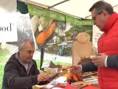 Ieri alla Fiera di San Giuseppe il sindaco della rinomata località ligure, attirato dal mais spinato.